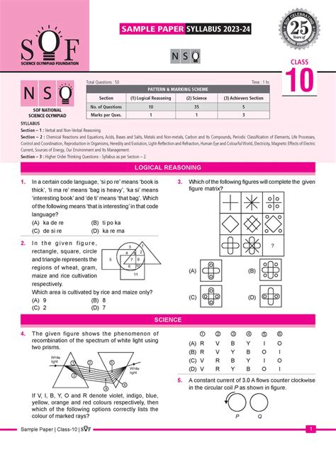 olympiad exam sample papers for class 10