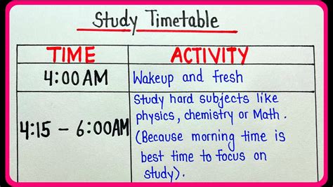 study schedule for class 10 students